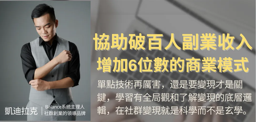 如何抓住【上班族時間少、沒方向、怕賺不到錢】的關鍵問題,打造【簡單可執行的社群創業方案】,讓【收入穩定成長】?